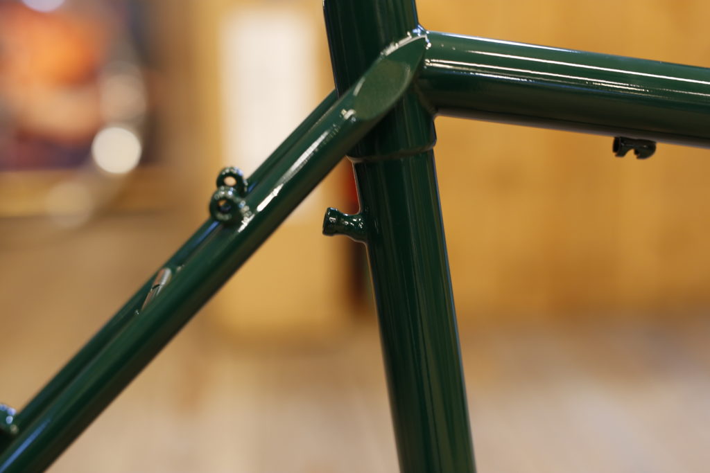 パイプチョイス的にもモデルTは、大量の荷物を積んでの長距離ツーリングや、日常で何年も使える自転車として選んでいただきたいフレームですね。