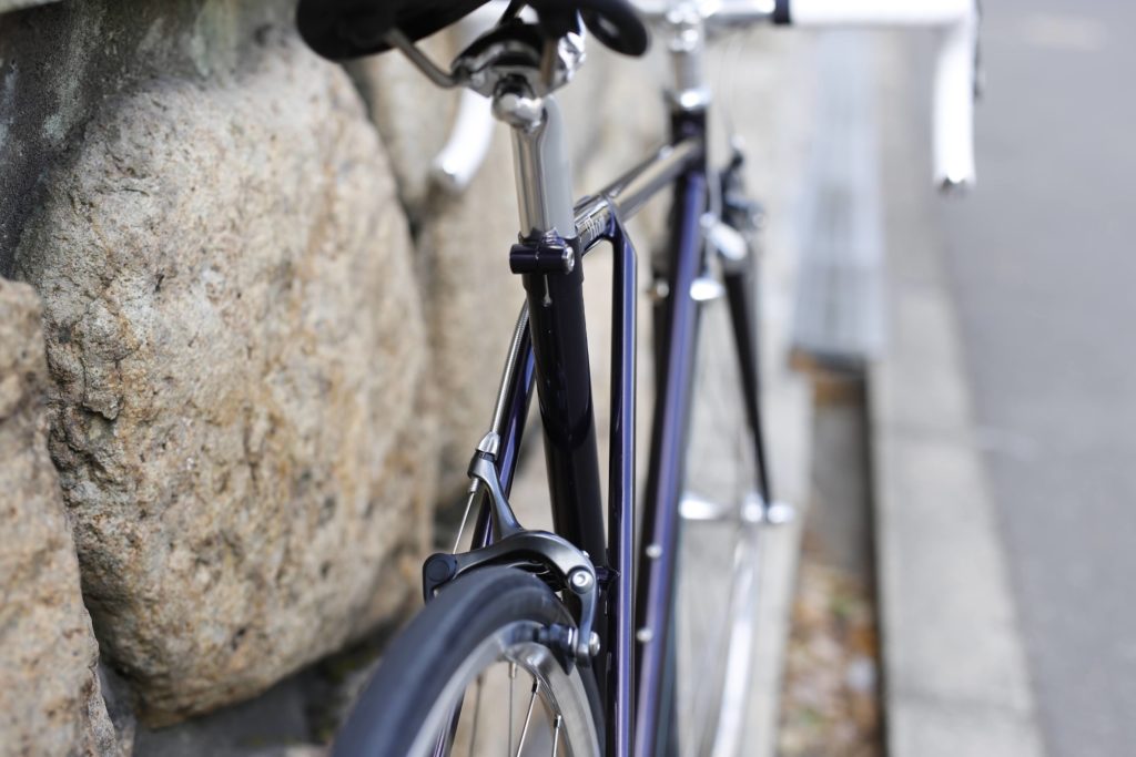 ヘッドパーツはTANGEのものでスーパーポリッシュのカラー、このポリッシュが綺麗で採用しました。