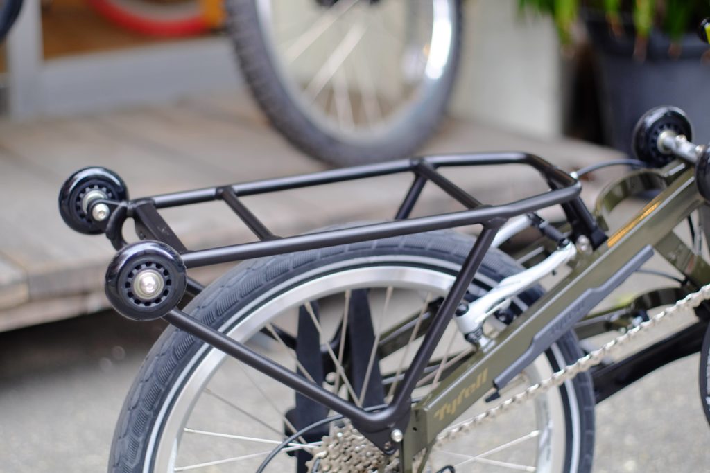 こちらを取り付けることで、折りたたみ状態で車体を転がすことが可能に!